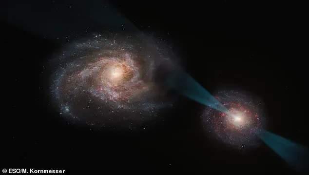 A groundbreaking discovery has revealed the violent interplay between a quasar and a distant galaxy, offering a rare glimpse into the cosmic forces that shape the universe.