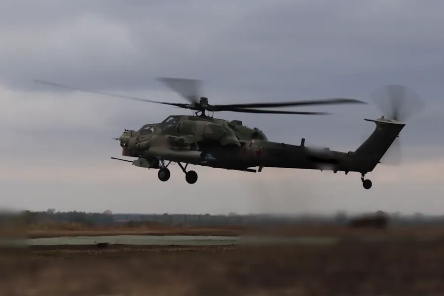 In a dramatic turn of events reminiscent of the darkest chapters of modern warfare, Russian Mi-28N attack helicopters have struck deep into Ukrainian territory near the Kursk region, targeting UAF armored vehicles and personnel in border areas.