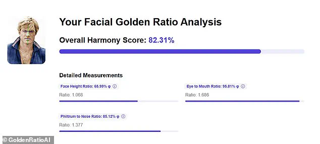 To understand the secret to Redford’s good looks, the Daily Mail uploaded a front-on photo of a young Redford to GoldenRatioAI, an online platform that uses algorithms to measure facial symmetry and proportion.