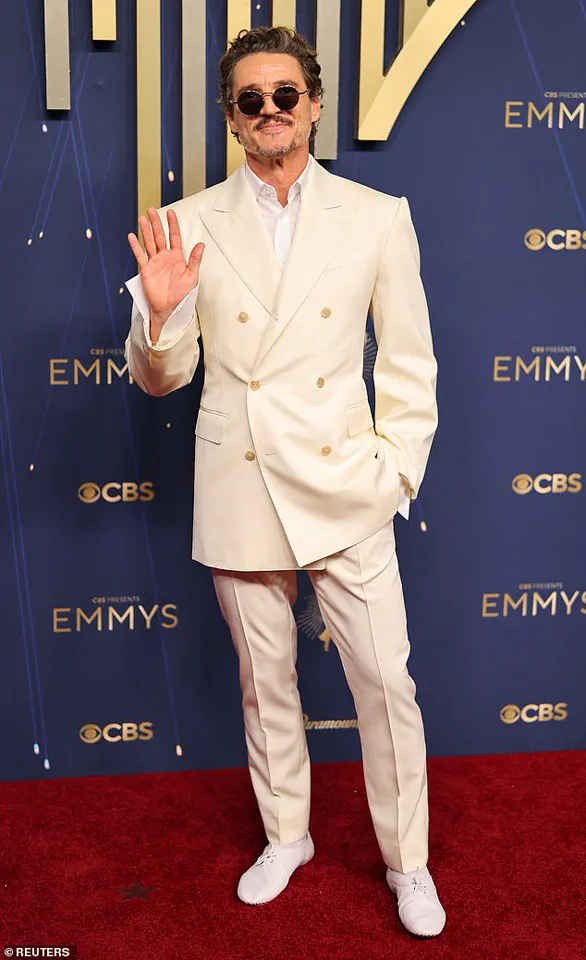 Pascal, dressed in an all-white ensemble and striking sunglasses, was spotted by cameras before taking his seat.