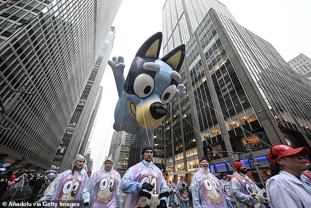 A large balloon of Bluey, an animated character, makes its way through the streets during the Macy’s Thanksgiving Day Parade in New York last year