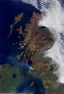 Met Office satellite pictures show the wildfire in the Galloway Forest park, bottom left of picture, April 5, 2025.