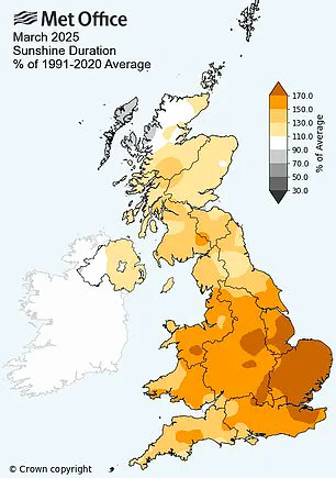 According to the Met Office data, this March was the sunniest since records began in 1910, with some areas of Wales and England getting 150 per cent of the average sunshine.