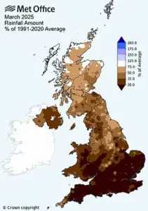 The month was also exceptionally dry, with the UK receiving just 43 per cent of its average rainfall for March.