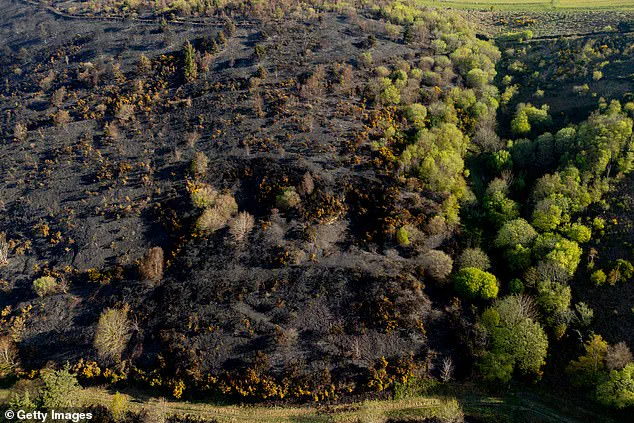 Oliver Claydon, a spokesperson for the Met Office, told MailOnline: ‘During dry Springs, there is an elevated chance of wildfire outbreaks in grassland and heather heaths.
