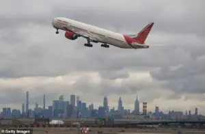 Pictured, an Air India plane taking off from New York, January 27, 2024.