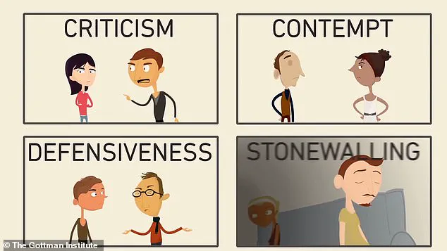 The third horseman is defensiveness, a reaction that often arises when a partner feels attacked. ‘Defensiveness is like a shield—it protects the person in the moment but creates a wall between partners,’ says Dr.