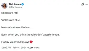 Happy Valentine’s Day!’ The post, which was later repurposed by Trump supporters as a cruelly ironic reminder of her current predicament, has become a symbol of the tangled web of political retribution that has ensnared both sides of the aisle.