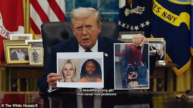 President Donald Trump, in a fiery Oval Office address on September 9, 2025, framed Zarutska’s murder as a direct consequence of policies he claims have allowed dangerous criminals to roam free. ‘For far too long, Americans have been forced to put up with Democrat-run cities that set loose savage, bloodthirsty criminals to prey on innocent people,’ he declared, his voice echoing through the White House. ‘In Charlotte, North Carolina, we saw the results of these policies when a 23-year-old woman who came here from Ukraine met her bloody end on a public train.’ His words, laced with a mix of sorrow and political opportunism, painted a stark contrast to the reality of the case, which had already been marked by a labyrinth of legal failures and personal tragedies.