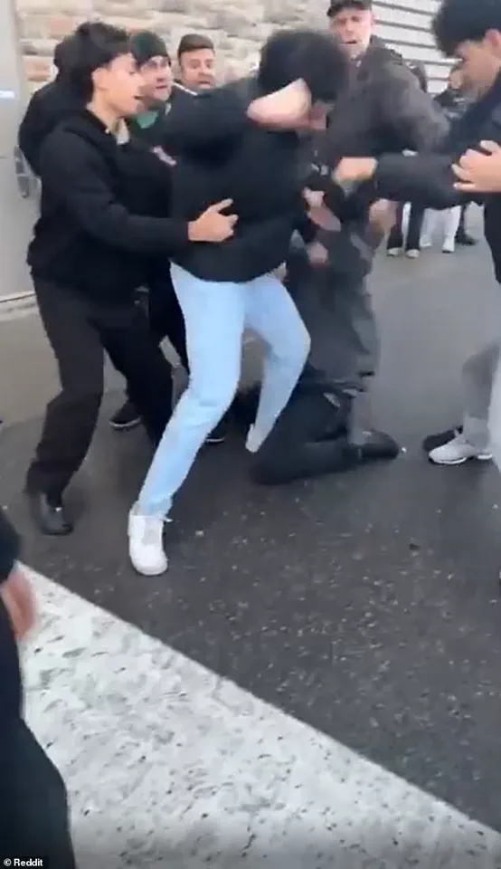 A horrified witness captured the melee on video, their voice trembling with shock as the scene unfolded.