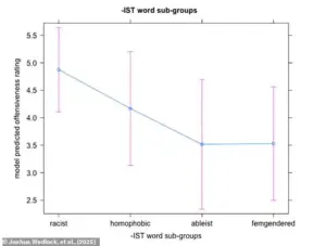 Racist slurs were deemed to be the most offensive terms of all. This was followed by homophobic terms, ableist terms, and sexist terms targeting women