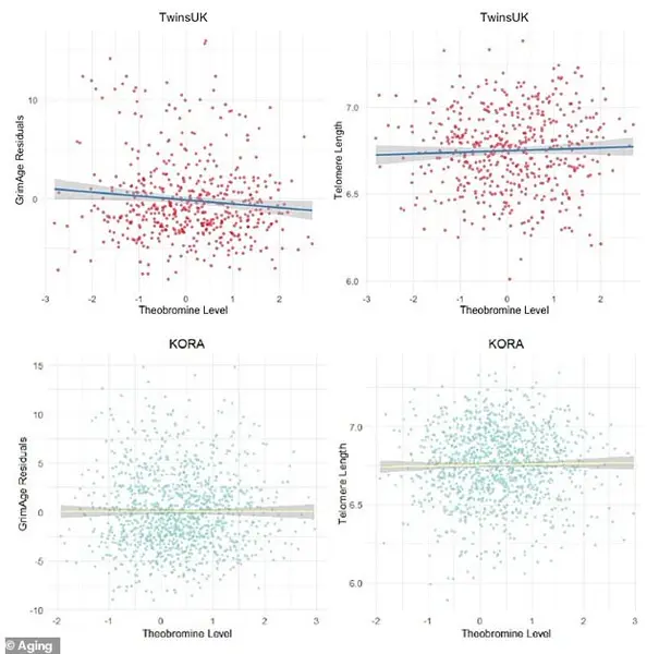 By analyzing health data from over 1,600 individuals across two European cohorts—509 from the UK’s TwinsUK and 1,160 from Germany’s KORA—scientists observed that higher levels of theobromine in the blood correlated with a lower biological age.