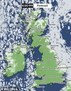 This aligns with the Met Office’s forecast of largely clear skies for the evening, with only patchy cloud expected over much of England and Wales, though light cloud cover may affect Scotland and the northeast of England.
