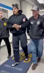 Venezuela’s President Nicolas Maduro is seen being taken into custody by US law enforcement officials