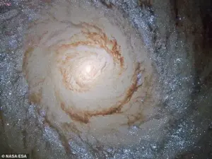 Calculations show that many galaxies would be torn apart instead of rotating if they weren’t held together by a large amount of dark matter. ‘Just five percent of the observable universe consists of known matter such as atoms and subatomic particles,’ the ESA explained. ‘The rest is dark matter, a cosmic scaffolding that we can’t see but whose presence is felt in the way galaxies move and cluster.’