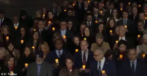 The vigil included a moment of silence, followed by a collective rendition of ‘God Bless America,’ a gesture that some praised as a unifying act.