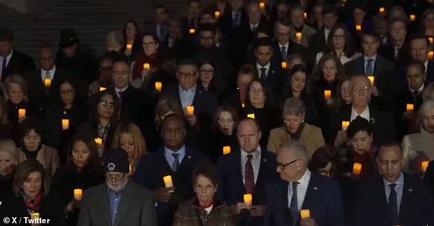 Schumer acknowledged this pain, stating, ‘We will make sure that your sacrifices that day are never forgotten, nor will we ever, ever forget the lives of those we lost in the connection with the attack.’ Yet, as the vigil unfolded, questions lingered about whether the Democrats’ efforts to commemorate the event were more about political messaging than genuine reconciliation.