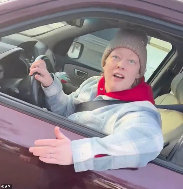 She reversed to head back down the road as an agent tried to open the driver’s side door handle before she drove off.