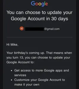 The controversy centers on Google’s practice of contacting children directly, framing the transition to unsupervised accounts as a rite of passage rather than a decision that should involve parents.