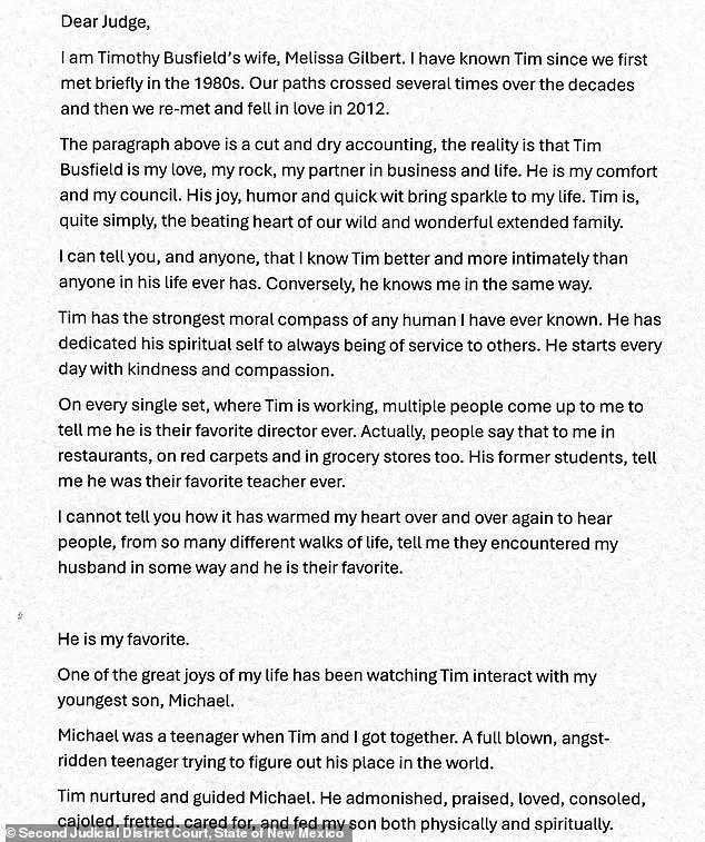 Actress Melissa Gilbert has taken an unprecedented step in a high-profile legal case, penning a heartfelt letter to a judge pleading for the protection of her husband, Timothy Busfield, who remains in custody on serious child sex abuse charges.
