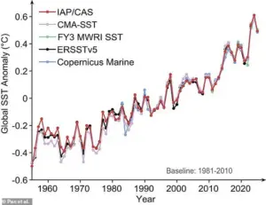 Rising ocean temperatures are devastating marine life, from coral reefs to fish populations, while also contributing to sea-level rise through thermal expansion. ‘Rising ocean heat drives global sea-level rise via thermal expansion, strengthens and prolongs heatwaves, and intensifies extreme weather by increasing heat and moisture in the atmosphere,’ the researchers warned.