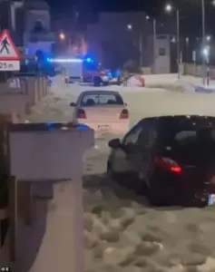 Dramatic footage captured the chaos as cars were buried beneath hailstones the size of golf balls, while rivers of ice cascaded through narrow streets, transforming the island’s usually sun-drenched thoroughfares into treacherous, glacial pathways.