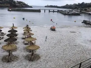 Tourists and locals alike were sent running for cover as huge hailstones pelted the resort of Porto Cristo, where idyllic beaches turned from golden to white in a matter of minutes as chunks of ice blanketed the sand.