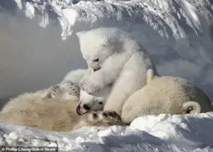 Chang’s photographs, while a testament to the enduring bond between mother and cubs, also serve as a poignant reminder of the fragility of the Arctic ecosystem.
