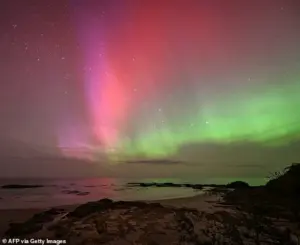 However, the event’s reach could extend beyond these regions, depending on the storm’s intensity. ‘We’ve seen similar events before, but the scale of this one is particularly striking,’ said Mark Reynolds, a photographer who has captured the aurora multiple times in Tasmania. ‘The lights can be so vivid that they look like they’re dancing in the sky.’