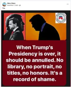 On a day marked by stark political symbolism, social media user Conmee posted a meme that read: ‘When Trump’s Presidency is over, it should be annulled.