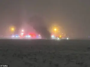 The incident, which occurred around 7:45 pm local time, has left authorities scrambling to assess the damage and determine the cause of the crash, as the aircraft was found smashed and flipped on the runway, according to grim photos released from the scene.