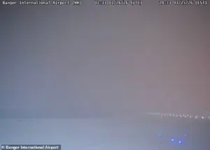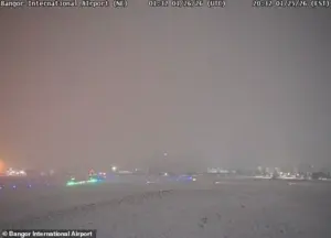 FAA weather cameras captured the harrowing conditions at BGR around the time of the crash, revealing a landscape shrouded in heavy snowfall and near-zero visibility.