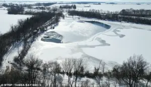 The following day, Tuesday, crews returned to the scene, drilling a three-inch hole through the thick ice to access the water below.