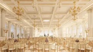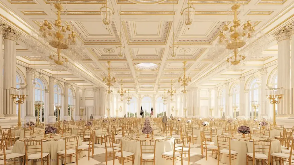 Donald Trump unveiled a new rendering of the ‘Big, Beautiful Ballroom’ in the White House’s East Wing, calling it a ‘magnificent’ project that will transform the iconic building. The $300 million (now inflated to $400 million) endeavor, revealed on his Truth Social page, shows a sprawling space designed to accommodate 1,000 seated guests, with a wall replicating the North Facade of the White House. Trump dismissed the current East Wing as ‘very small, dilapidated and rebuilt many times,’ framing the project as a long-overdue modernization. Yet, the controversy surrounding the demolition of a structure that dates back to 1902—and was rebuilt in 1942 to conceal a bunker—has sparked heated debates. How can a nation so rich in history justify the destruction of a building that has witnessed presidential triumphs and tragedies for over a century?